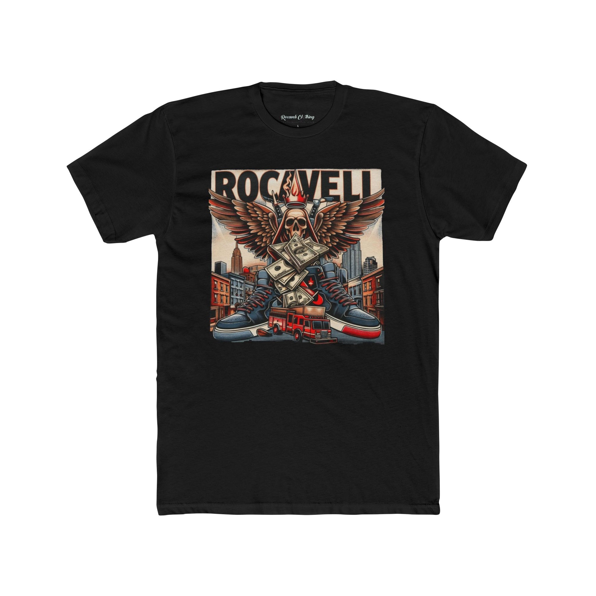 ROCAVELI Rockwell Cityscape Tee — Vintage Eagle Skull Motorcycle Graphic T-Shirt